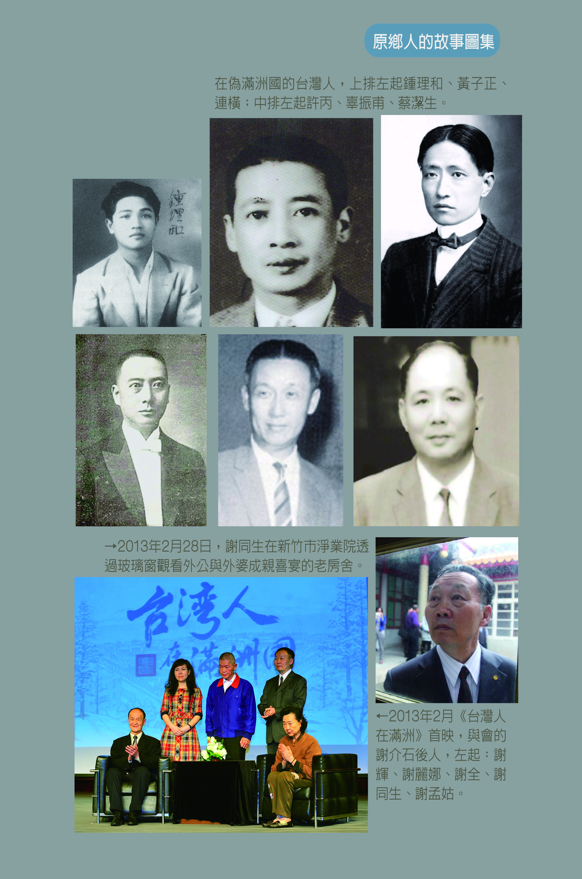 謝同生:據統計,上世紀30年代,約有五千多台灣年輕人離開了處於亞熱帶的寶島,滿懷希望地奔向冰天雪地的東北,到偽滿洲國討生活,其中不乏一些知名人士:已故海基會董事長辜振甫、連戰的祖父連橫、溥儀座上賓的紅頂商人許丙、《原鄉人》的作者作家鍾理和、蔡英文的父親蔡潔生也曾經在偽滿洲國大連機場修飛機。台灣醫生黃子正就是在我外祖父的介紹之下當上了溥儀的「御醫」。這些台灣人就像大陸關內人為生計闖關東一樣,也為了更好的生活而背井離鄉,做起了「關東夢」。