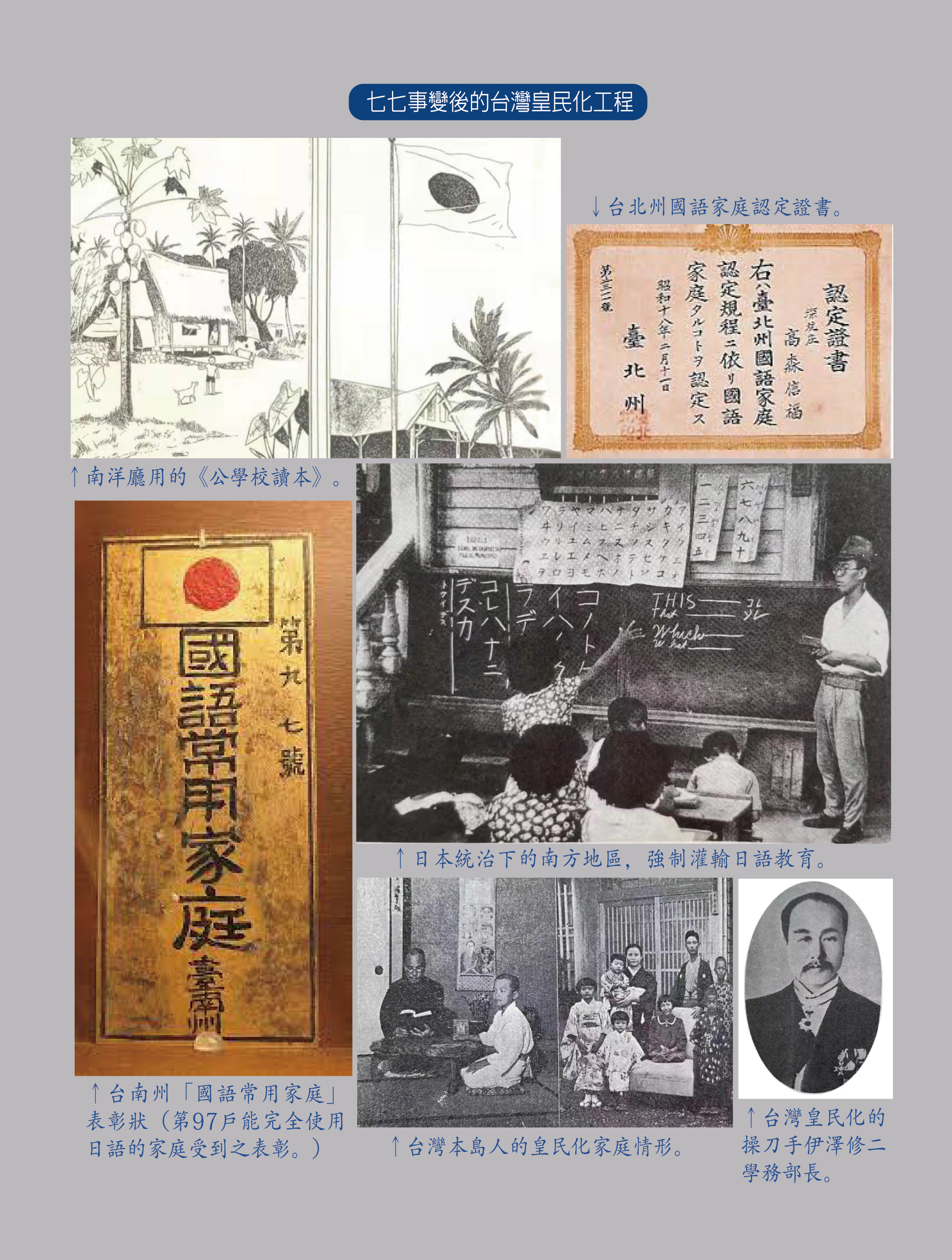 正是在上述歷史背景與政治需求下,台灣總督府開始大力推行以「皇民化」教育為核心的同化政策。