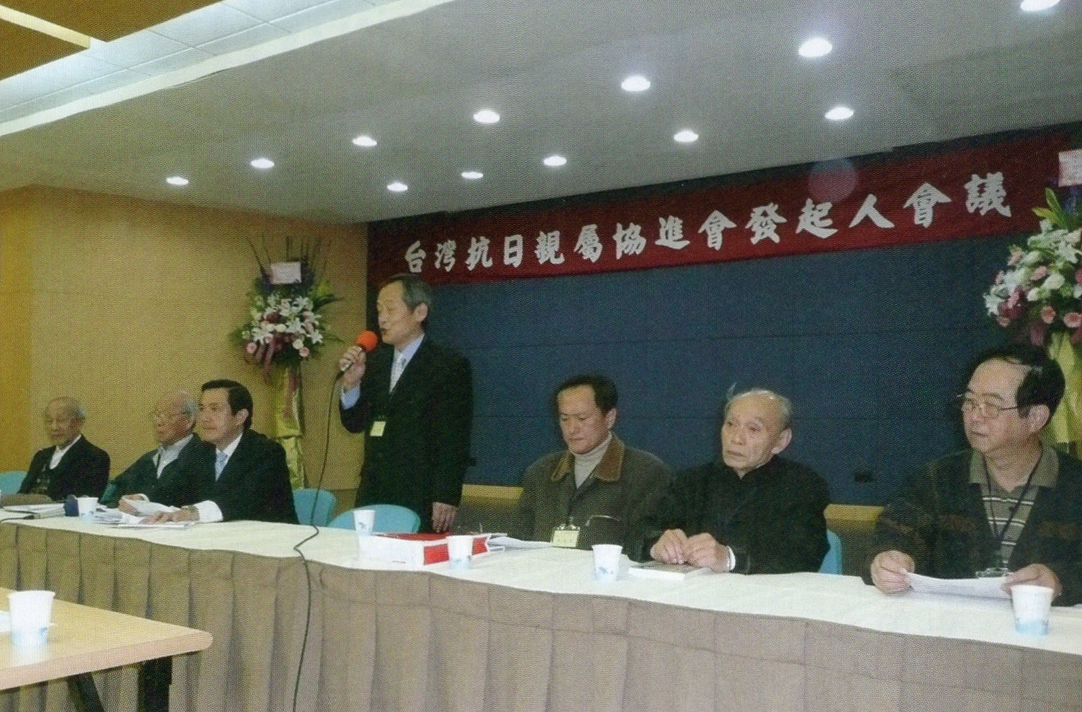 圖說:2008年2月25日,台灣抗日志士親屬協進會召開籌備大會,右起李力群、楊建、張建昌、林光輝、馬英九、廖德政、林憲。
